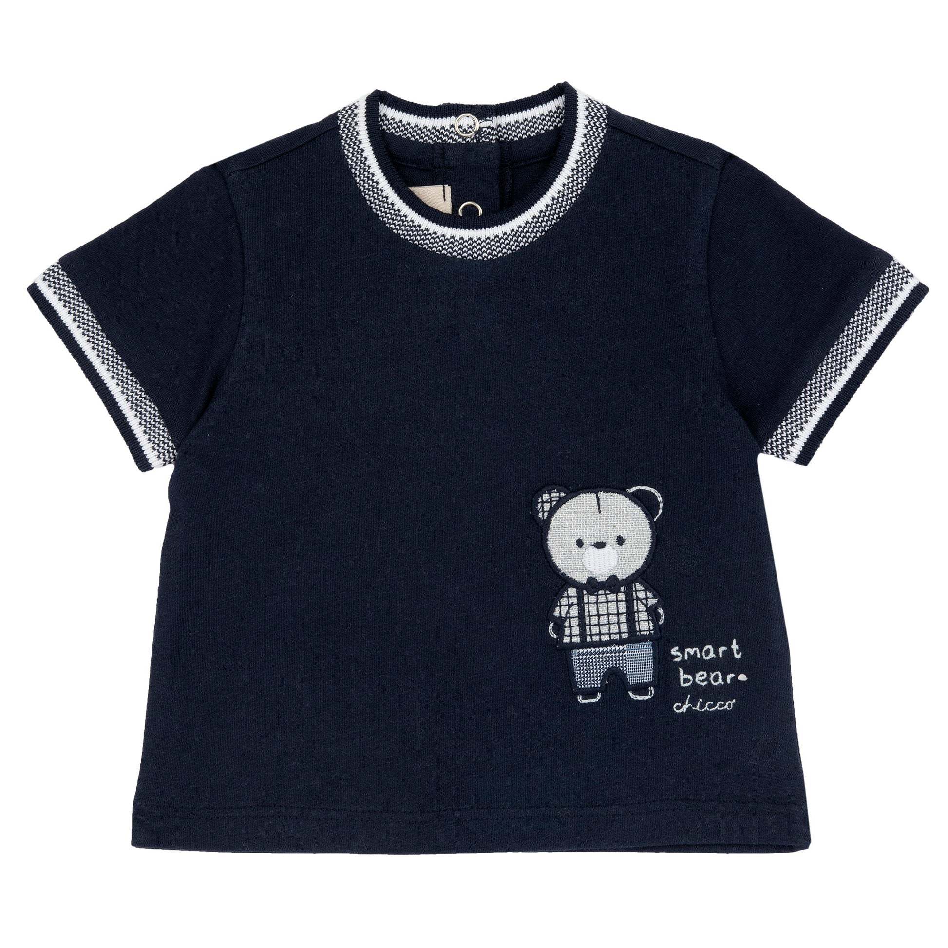 Dark blue embroidered cotton T-shirt for boys with a regular fit, designed for breathable everyday casual comfort.