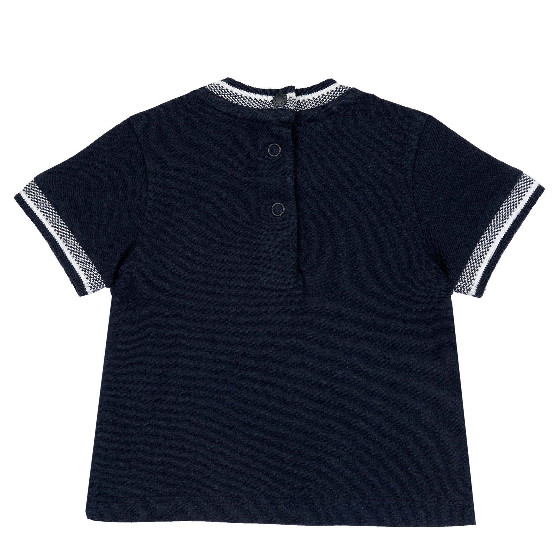 Boys Dark Blue Embroidered Cotton T-Shirt with Regular Fit