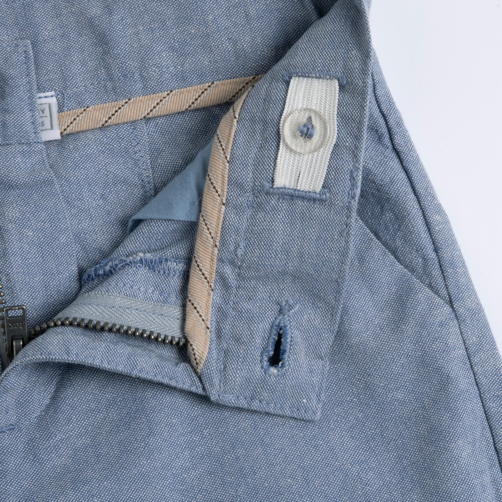 Medium light blue cotton long trousers for boys with a regular fit, designed for breathable everyday casual comfort.
