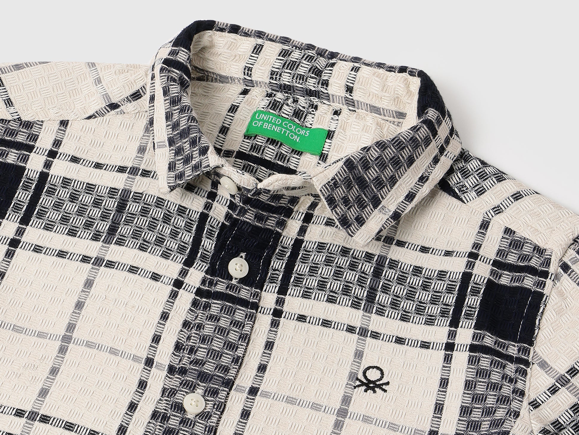 Boys Off White Monochrome Check Regular Fit Casual Shirt