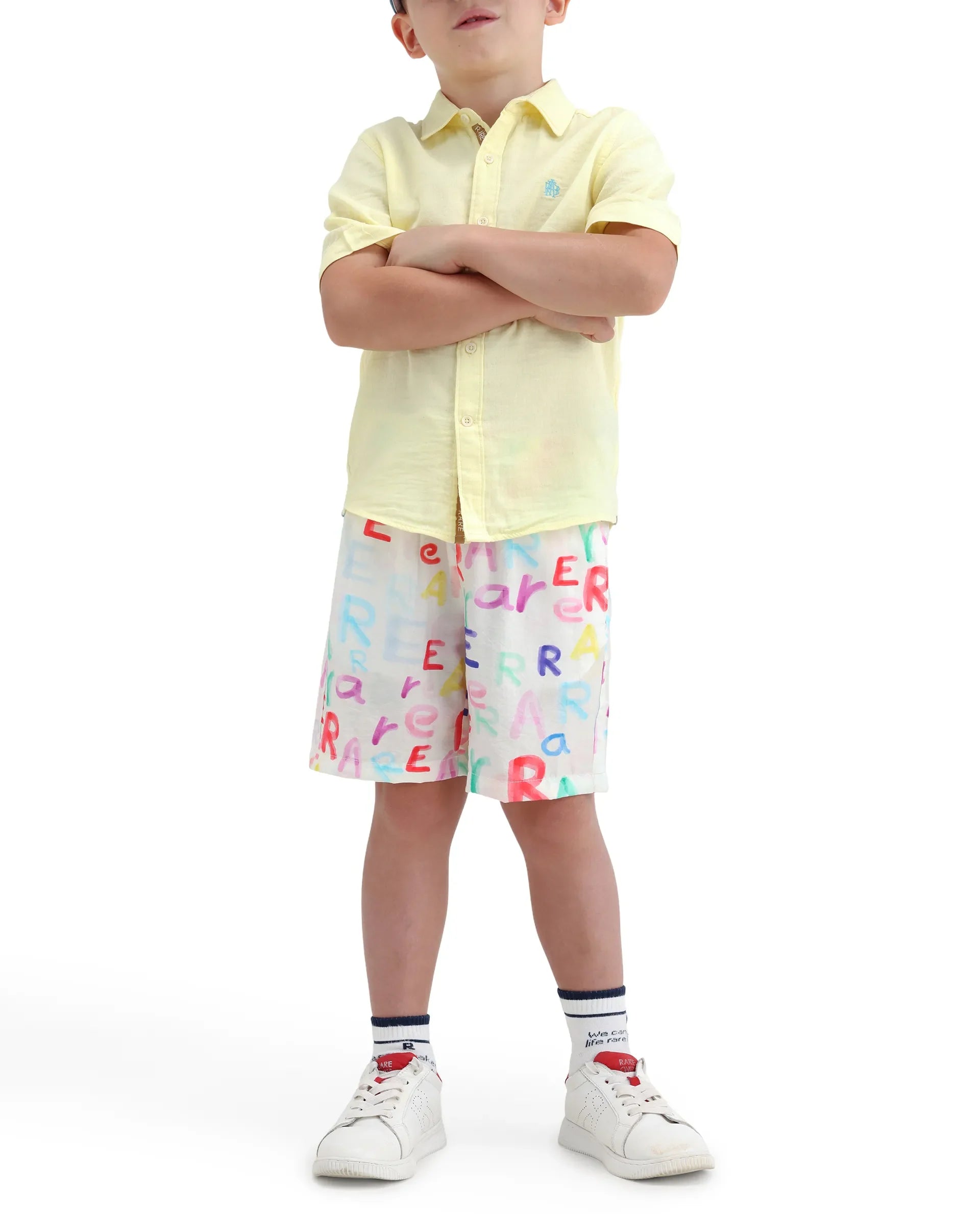 Viscose nylon blend boys shorts with regular fit and button closure. Lightweight design for comfortable casual wear.