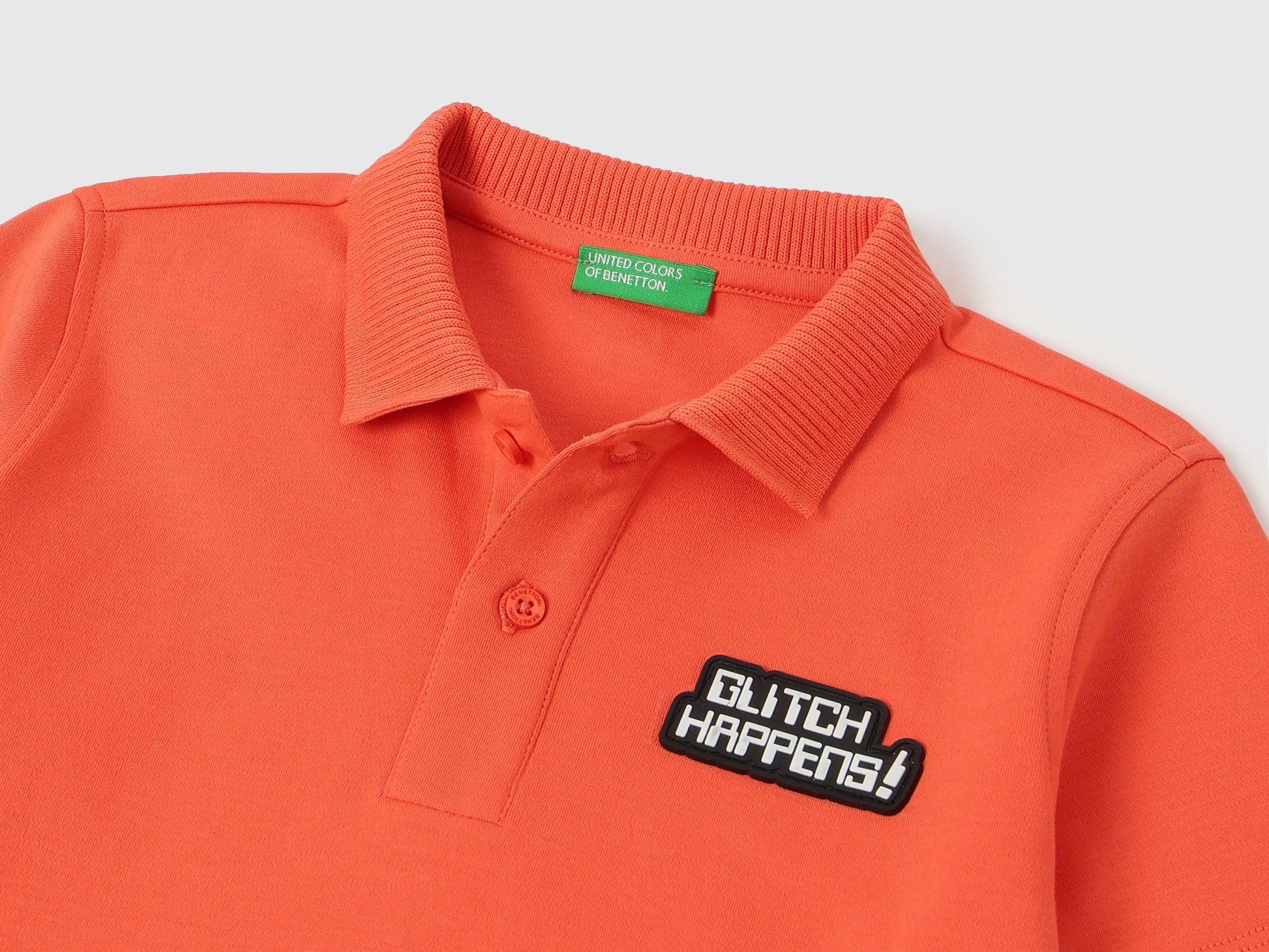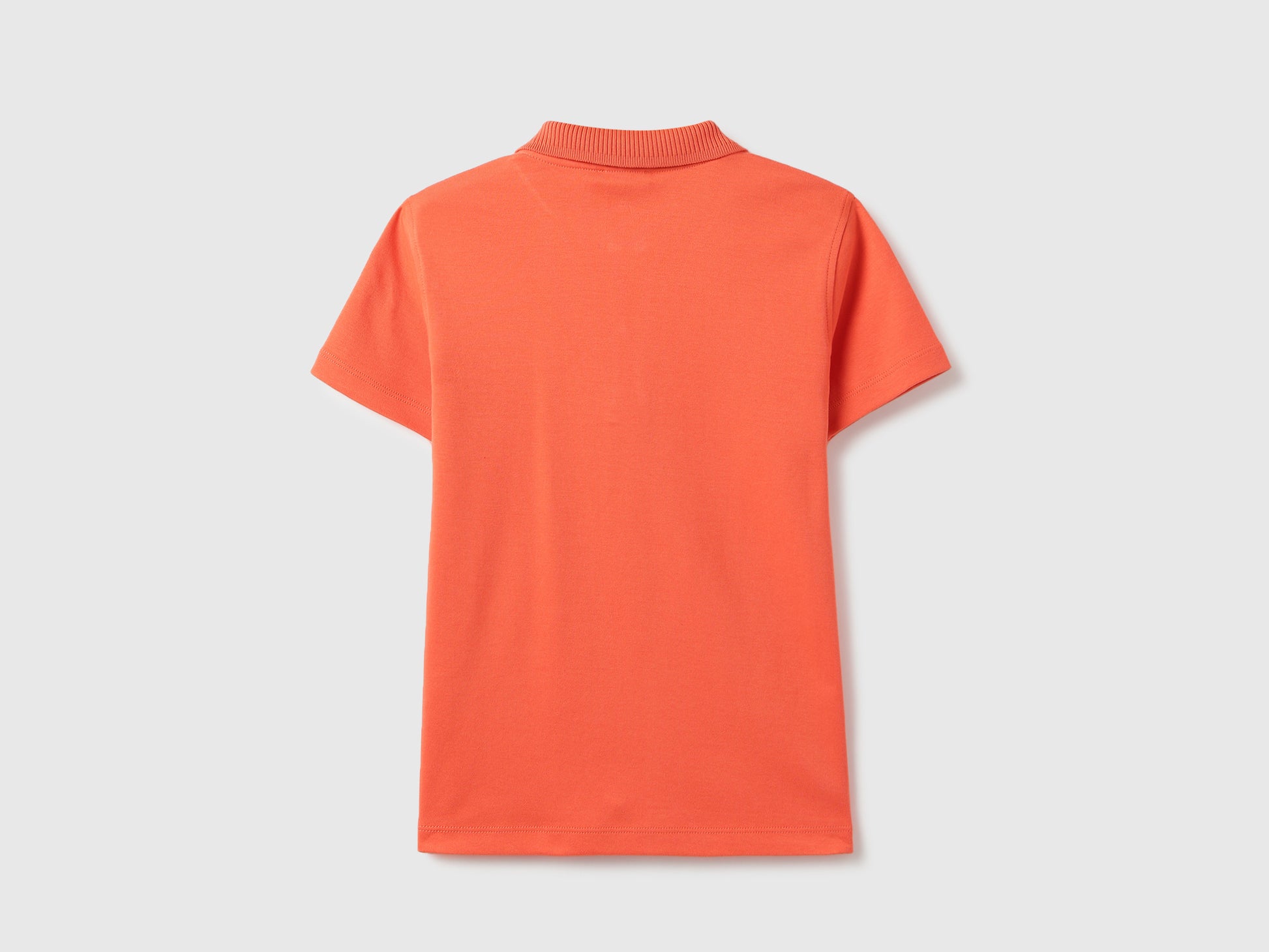 Boys Orange Cotton Polo Shirt with Jacquard Collar