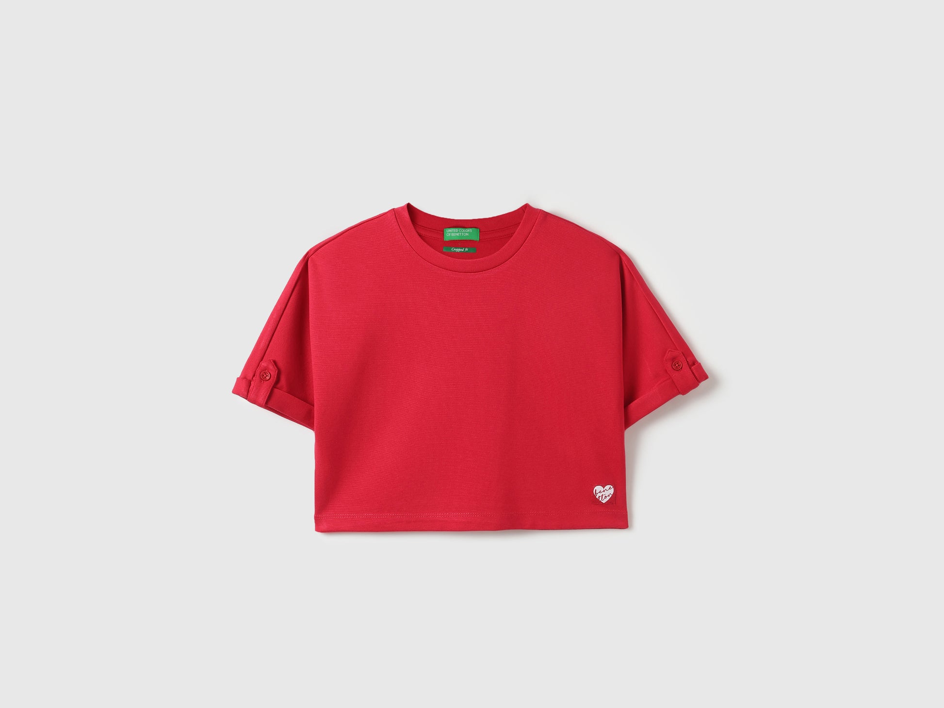 Boys Red Boucle Patterned Cotton Boxy T-Shirt with Contrast Tipping