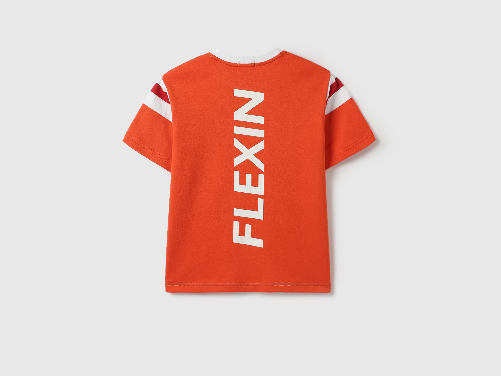 Boys Red Cotton Relaxed Fit Striped T Shirt with Back Print