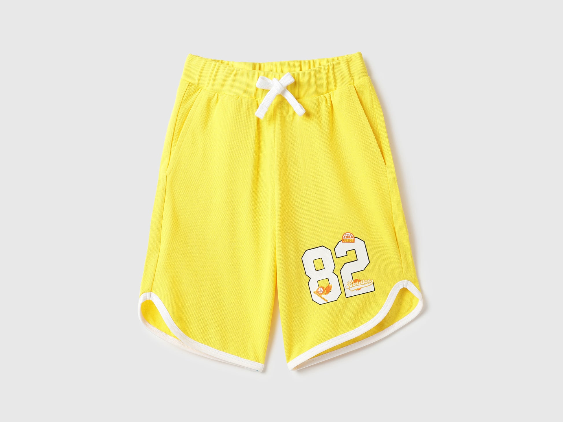 Boys Yellow Cotton Pique Shorts with Number Detail