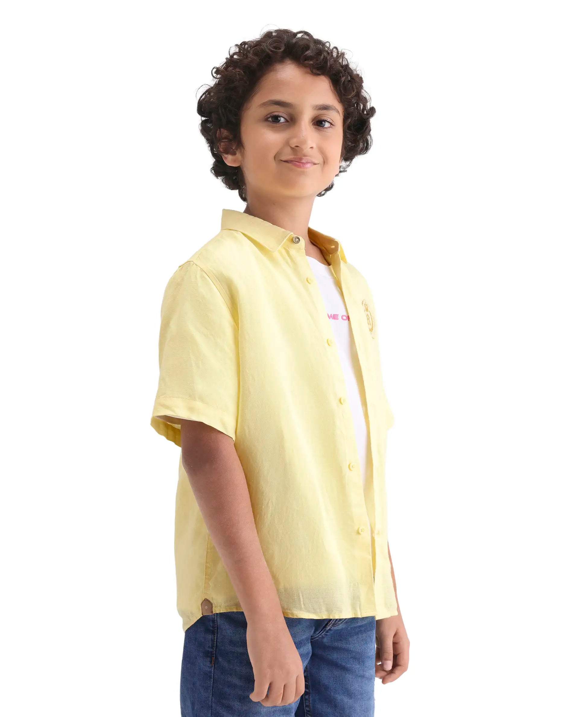 Boys Yellow Linen Blend Regular Fit Shirt