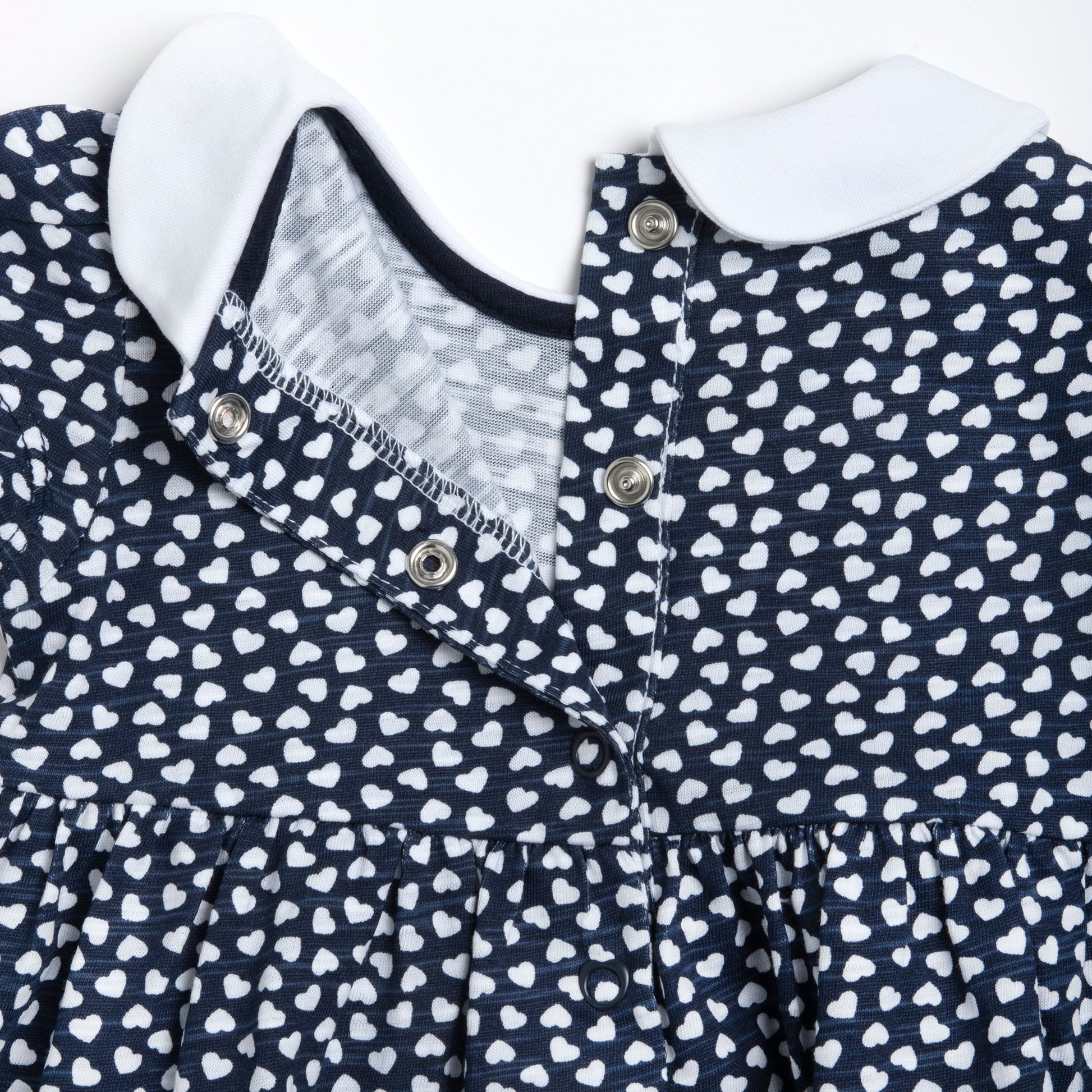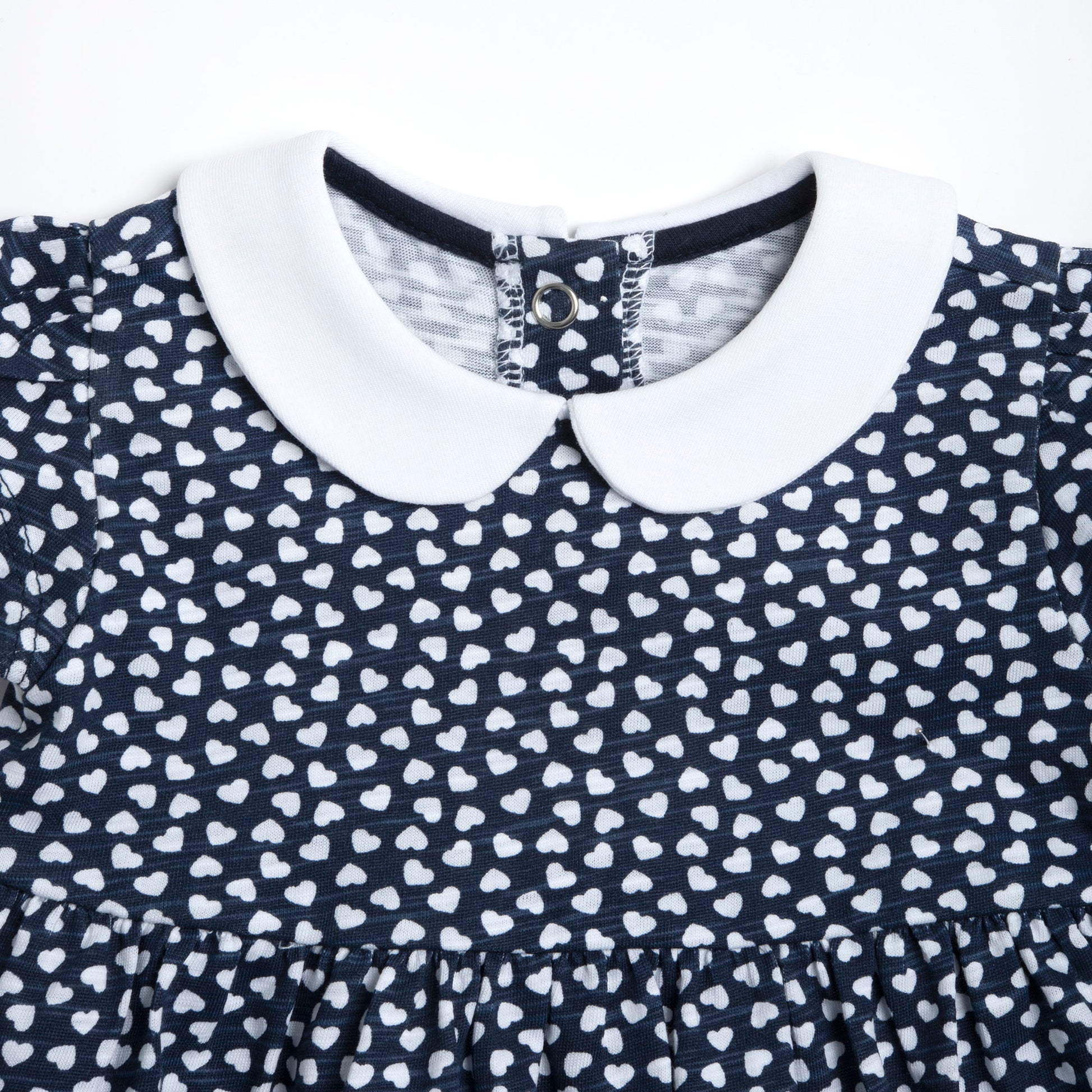 Girls Dark Blue Printed Cotton A-Line Dress with Peter Pan Collar
