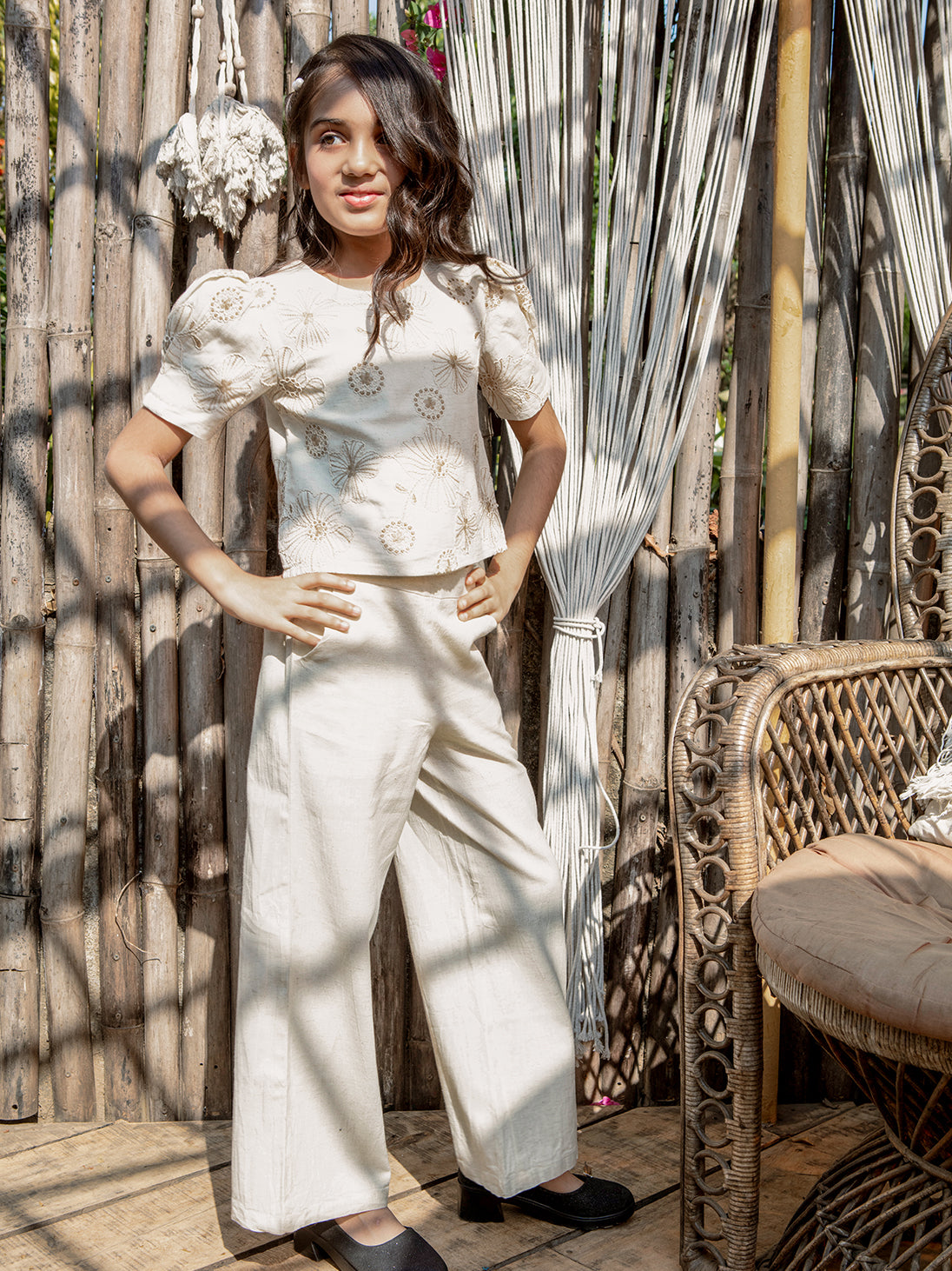 Girls Embroidered Woven Regular Fit Casual Cord Set