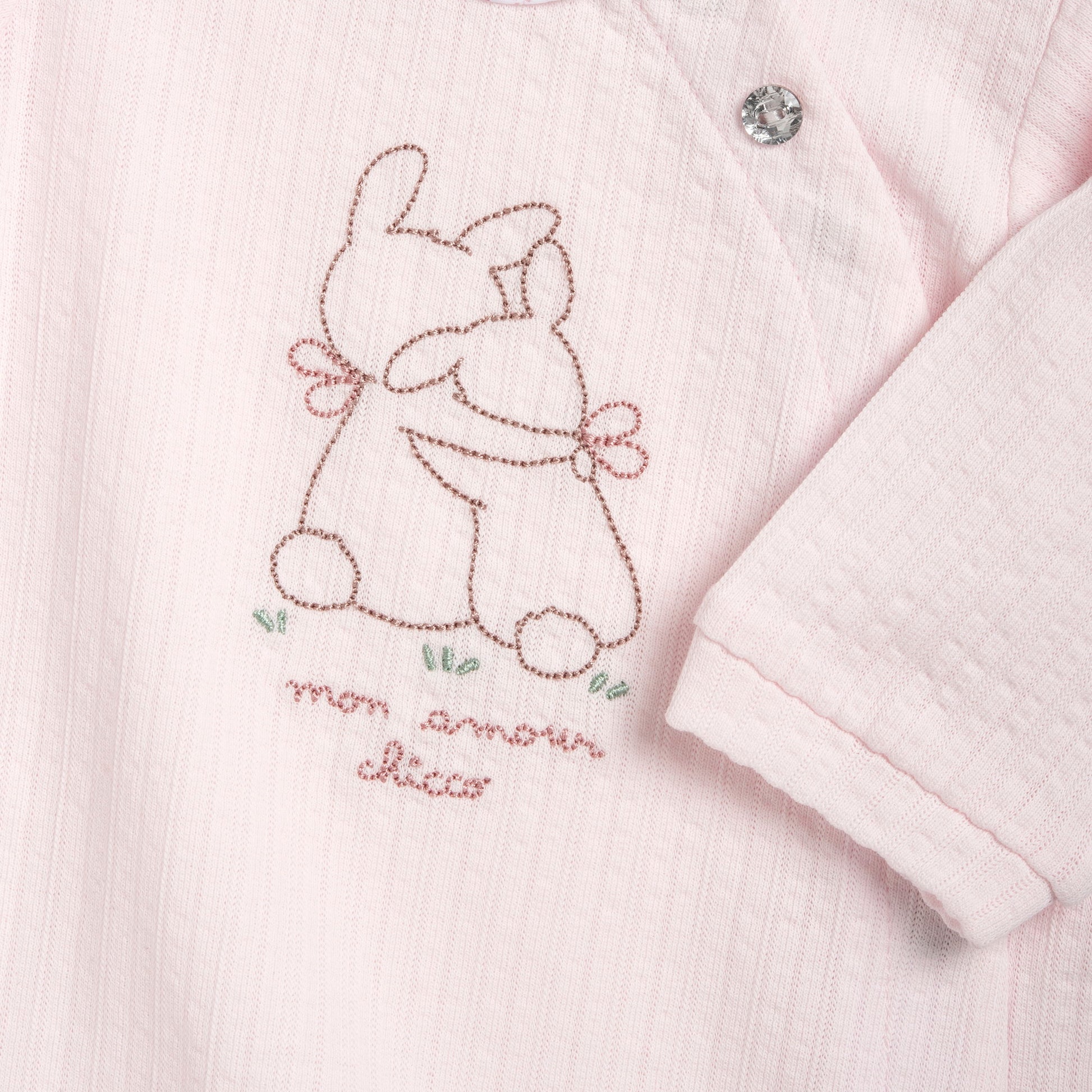 Girls Light Pink Embroidered Cotton Front Opening Babysuit with Peter Pan Collar
