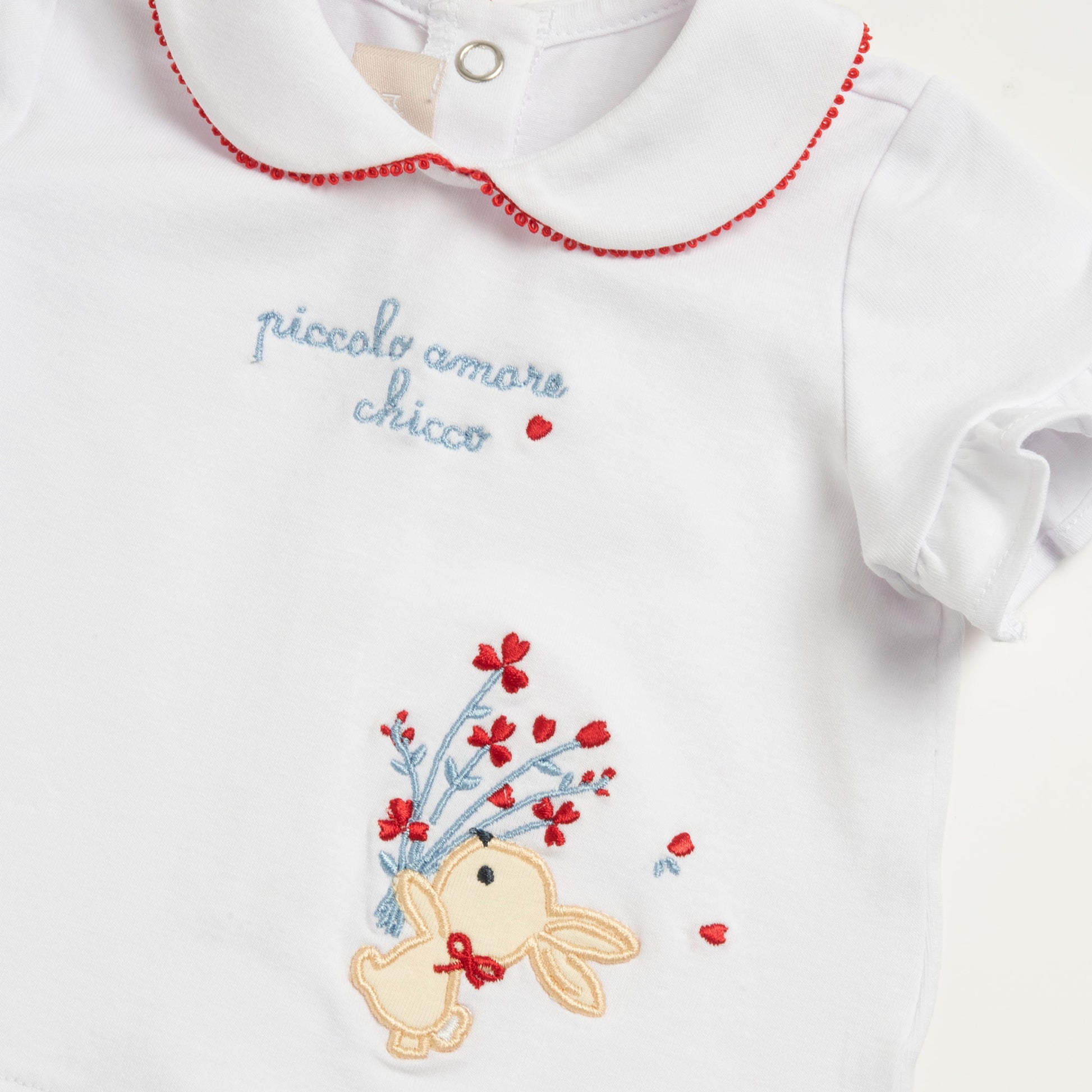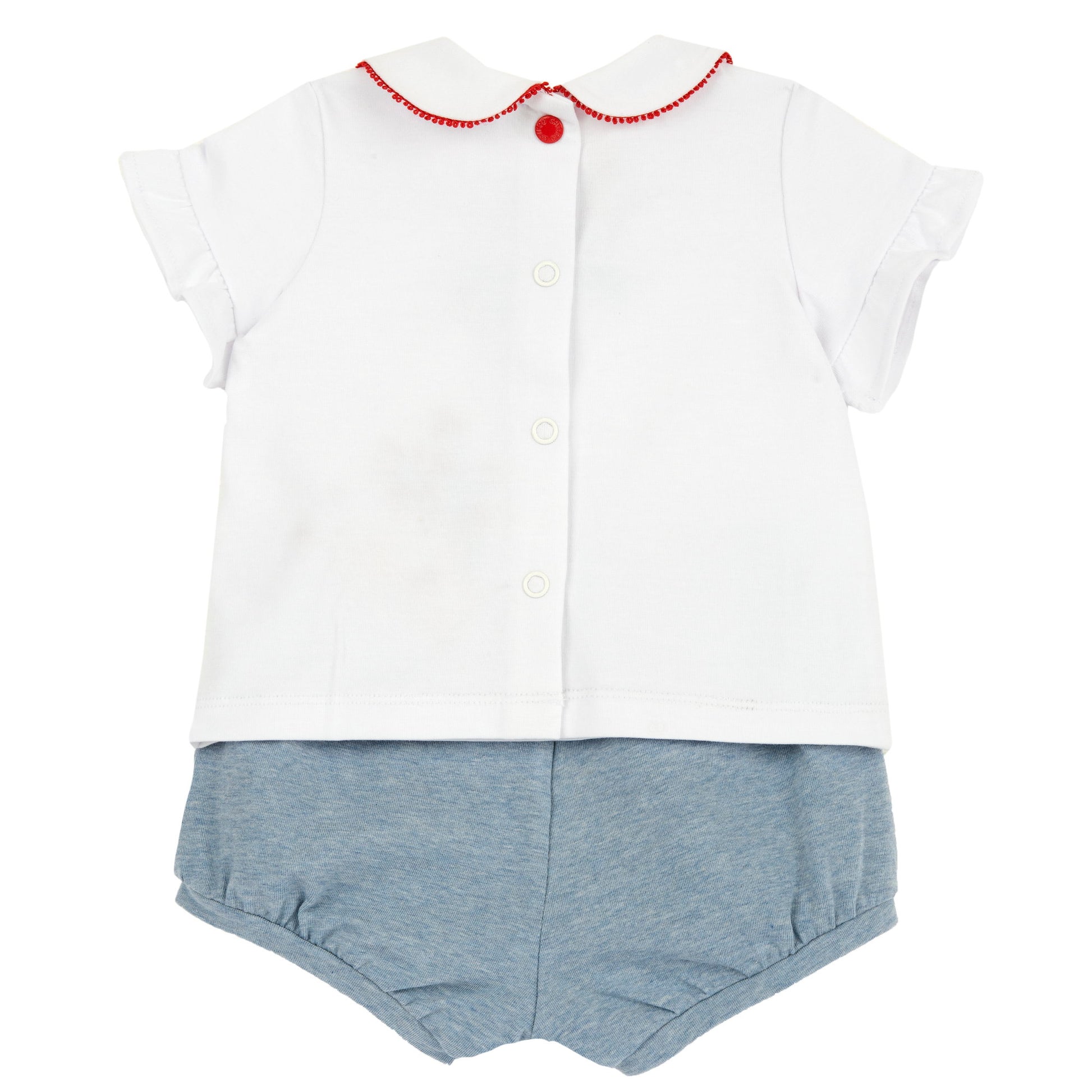 Girls Medium Light Blue Embroidered Cotton Stretch T-Shirt and Shorts Set