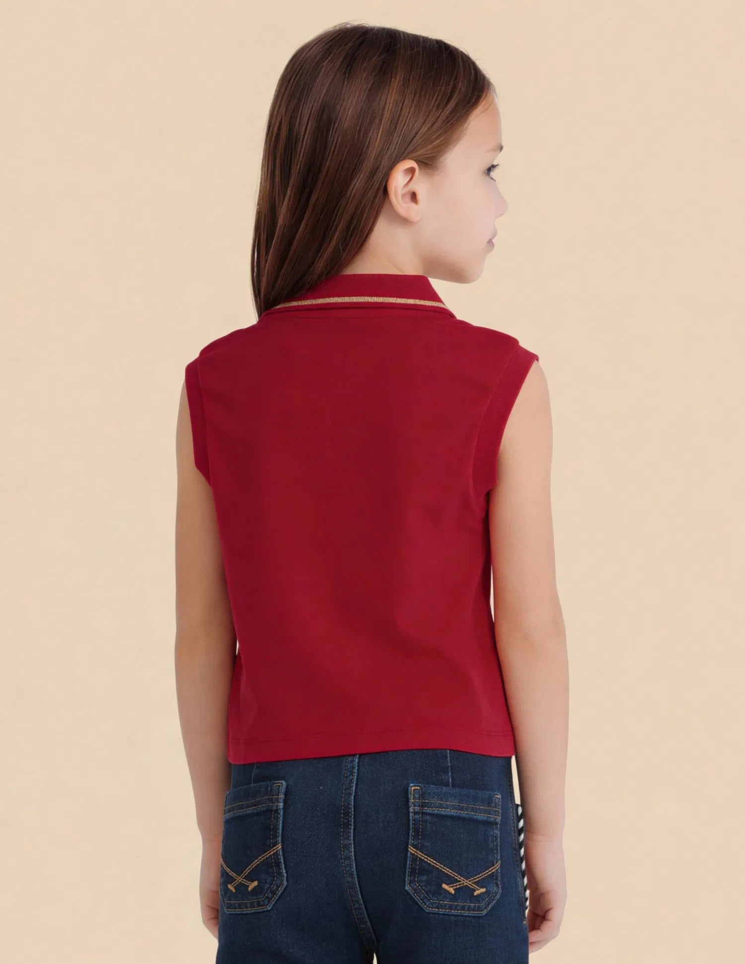 Girls Red Cotton Solid Sleeveless Regular Fit Top