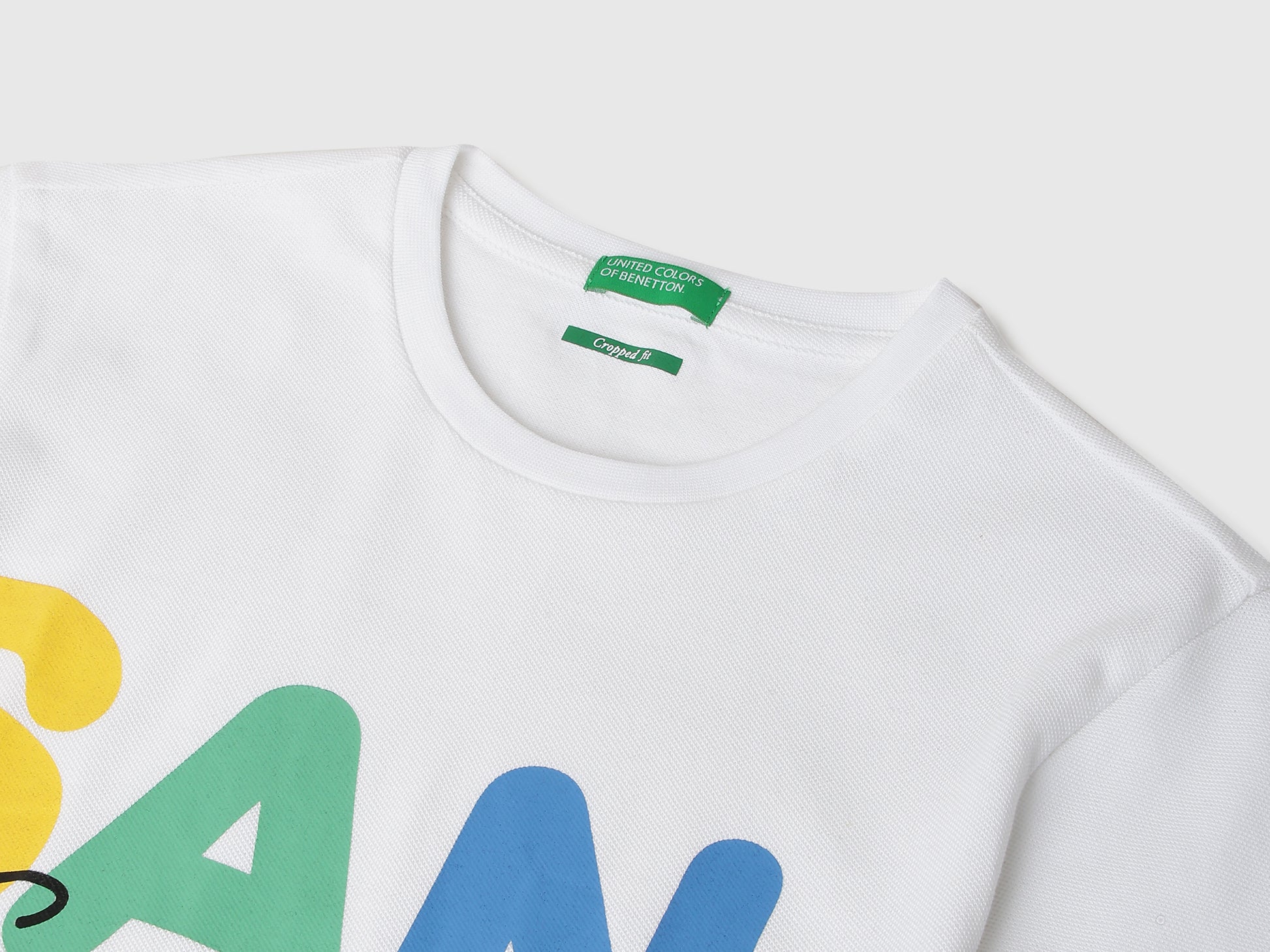 100% cotton girls’ white pique cropped tee with short sleeves and round neck for breathable everyday comfort.