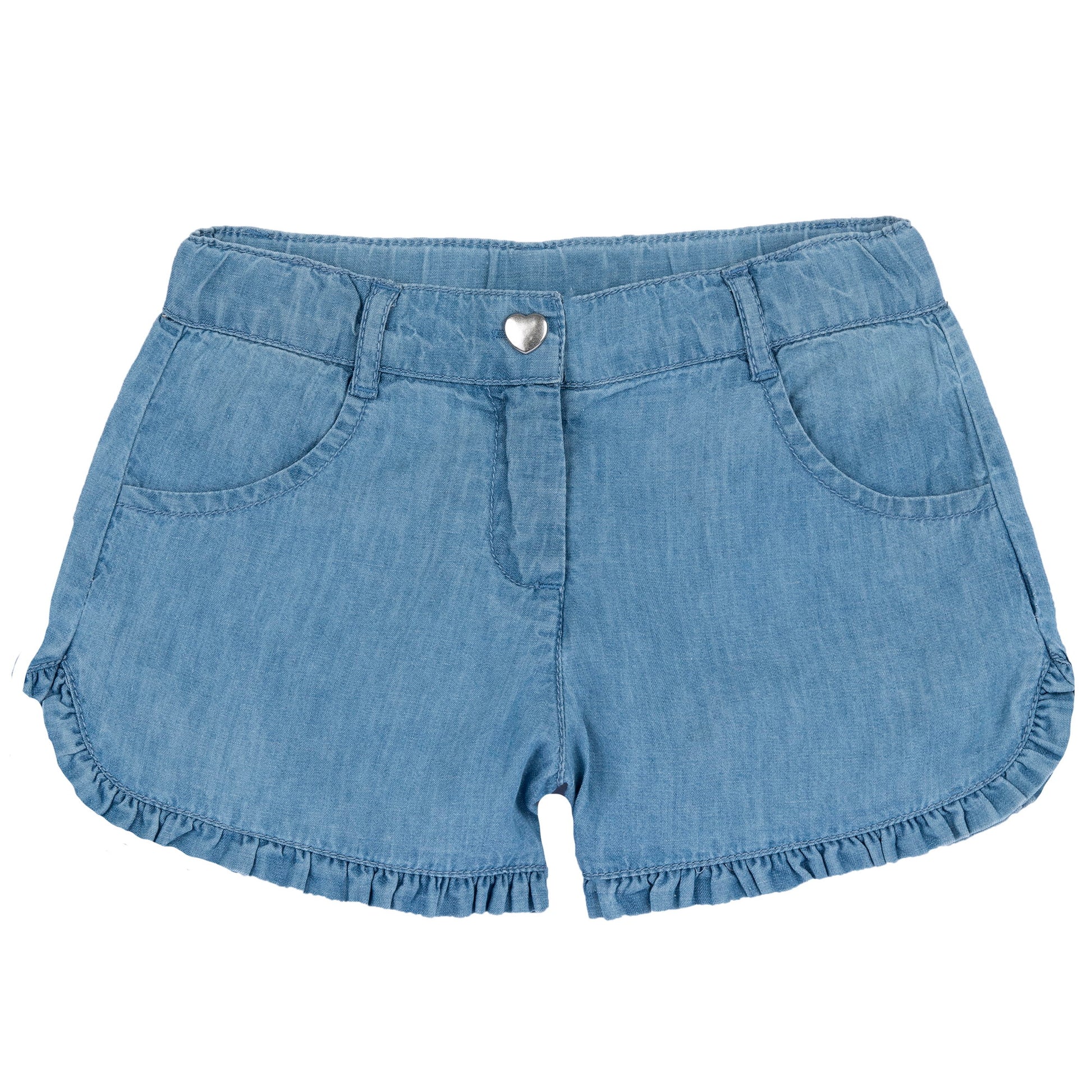 Medium Light Blue Solid Cotton Short Trousers for Girls