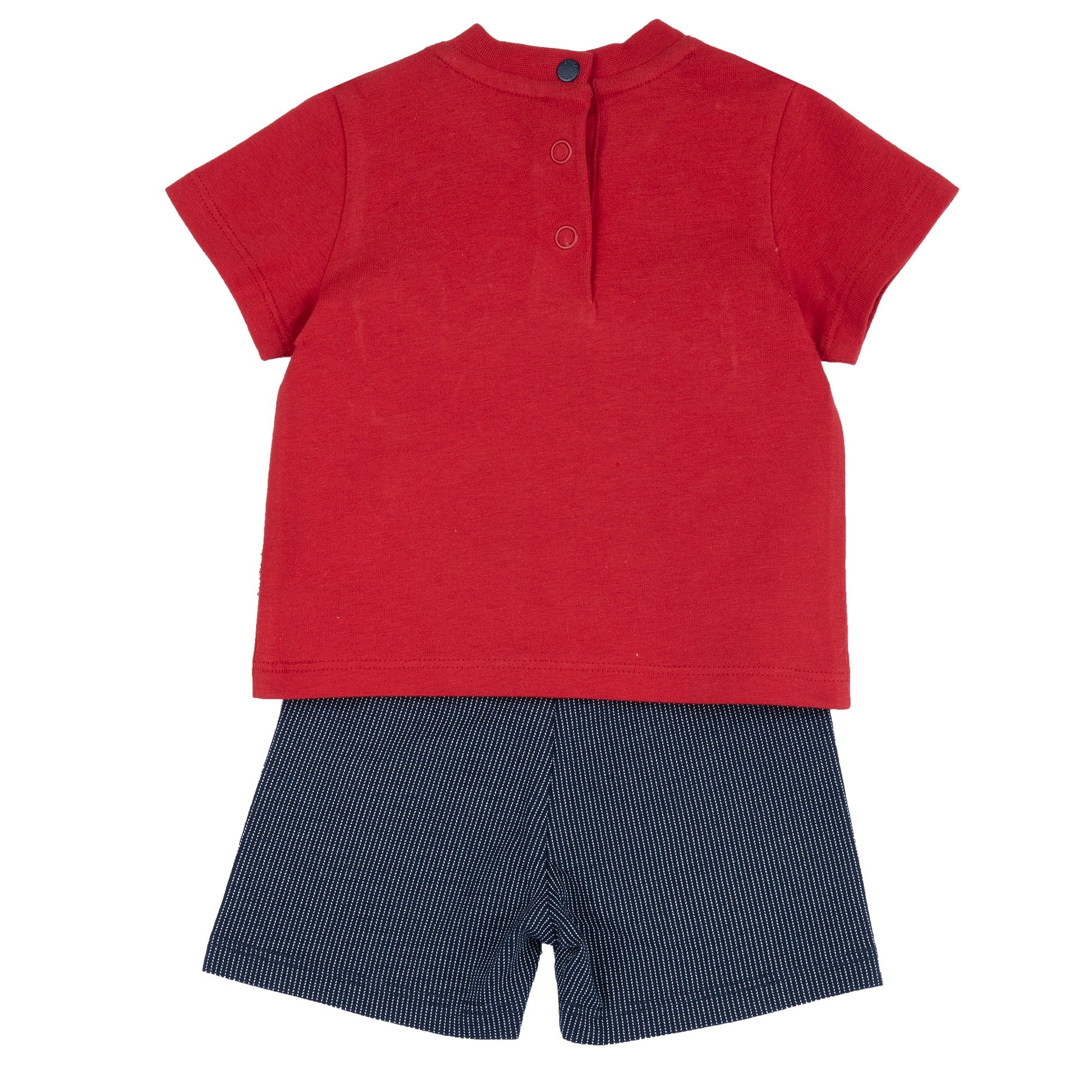 2 piece cotton outfit with a graphic t-shirt and matching short pants. Regular fit, breathable fabric, made for everyday casual wear.