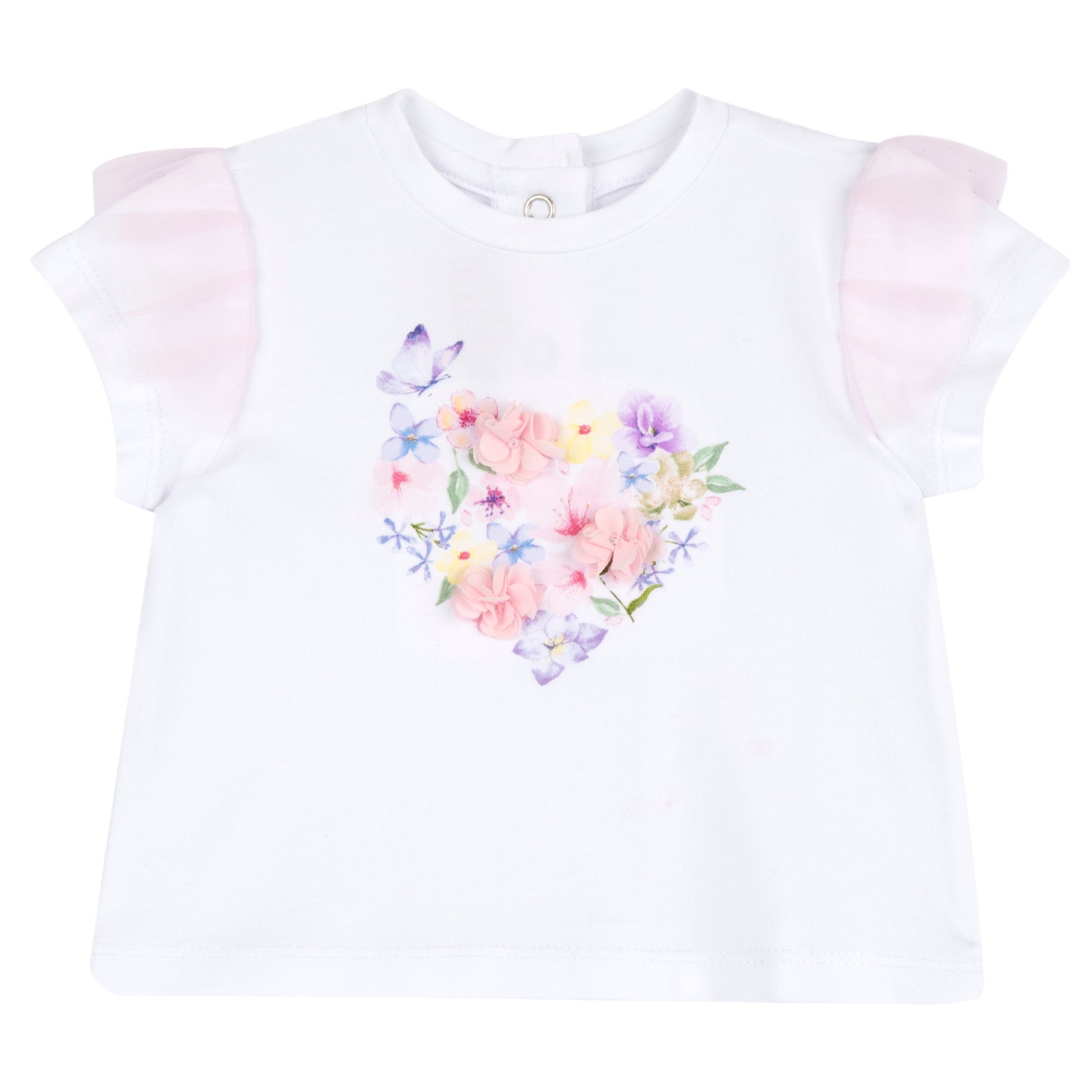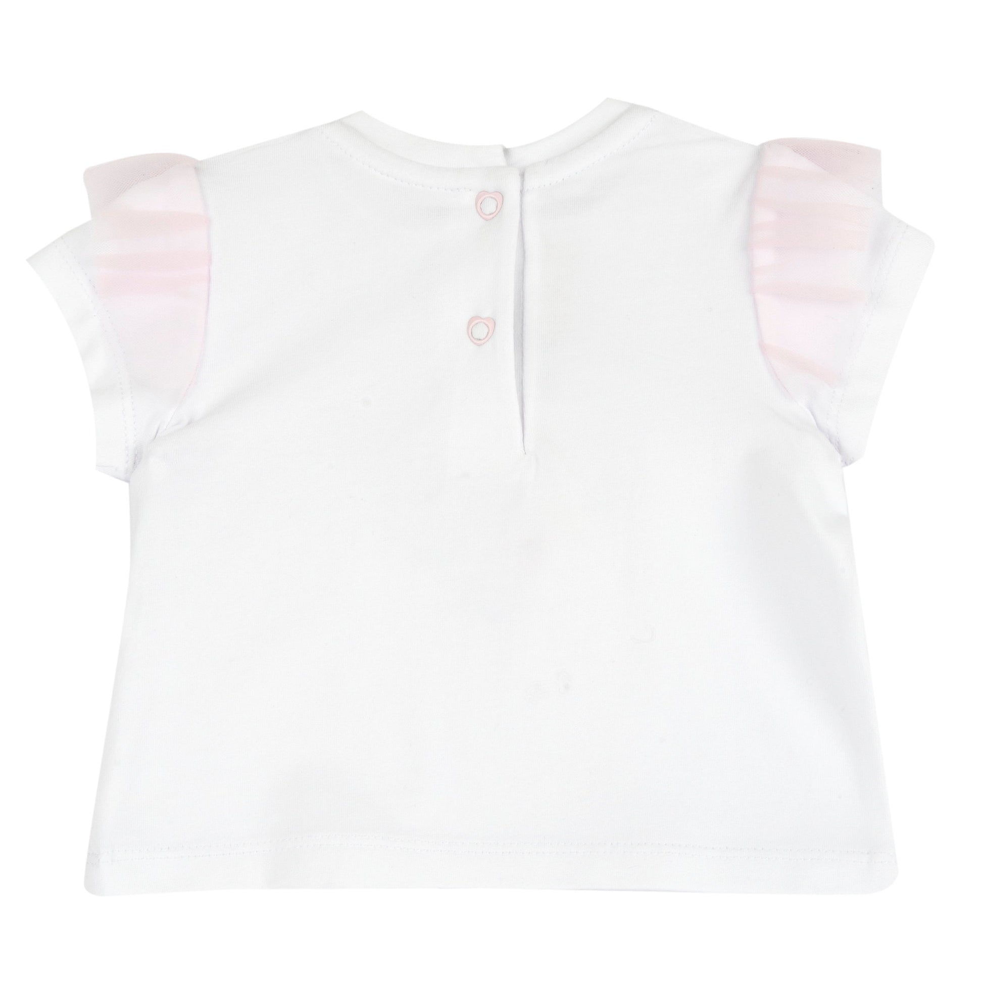 Playful Graphic Cotton Blend Tee for Girls in White & Pink Tones