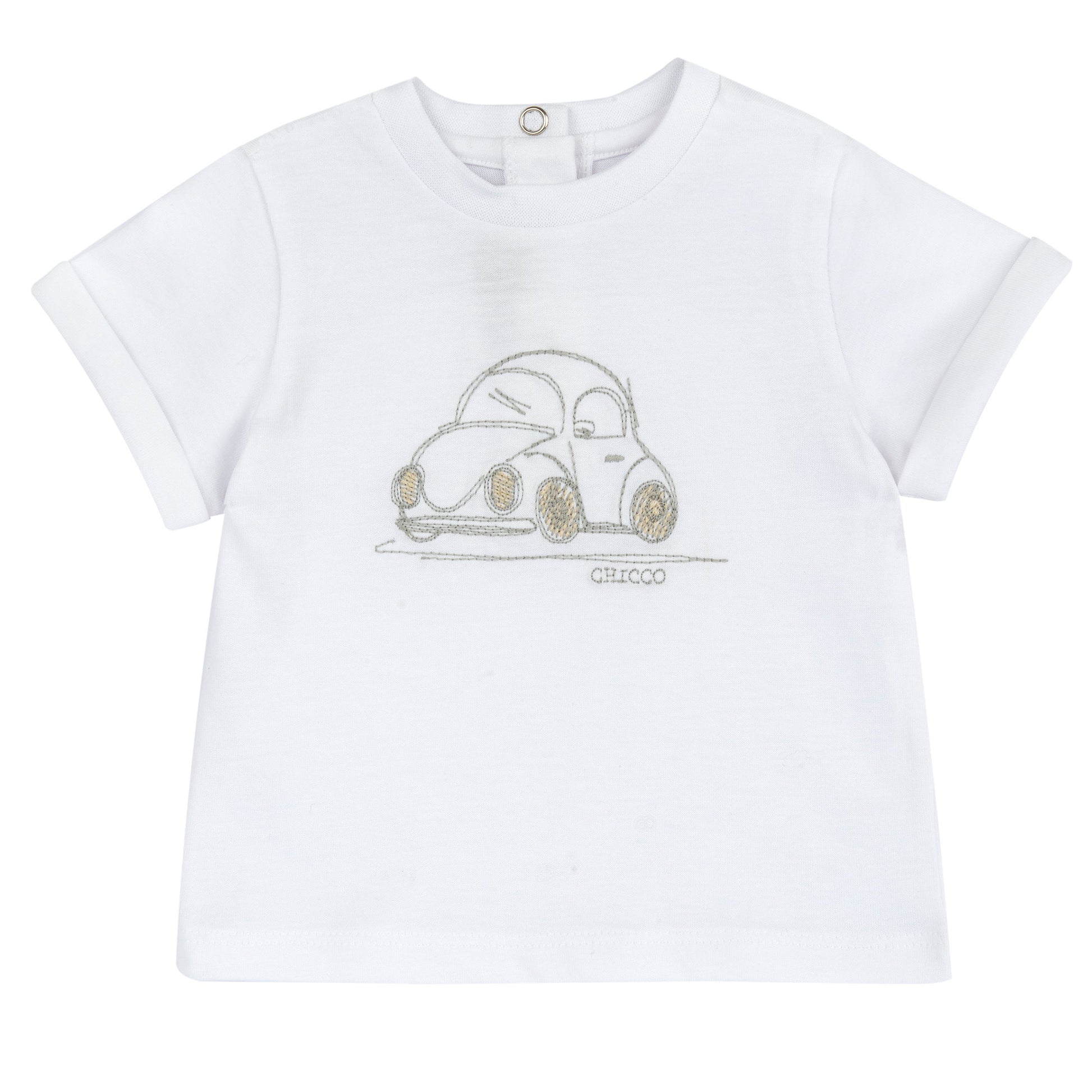 White Embroidered Cotton Short Sleeve T-Shirt for Boys