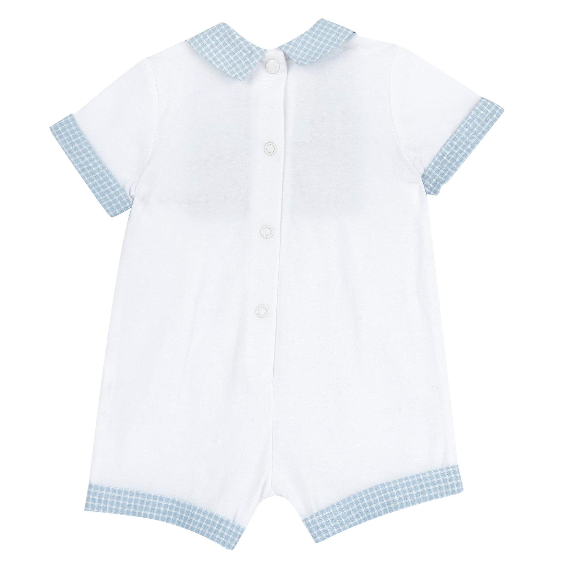 White & Light Blue Embroidered Cotton Short Sleeve Romper for Baby Boys